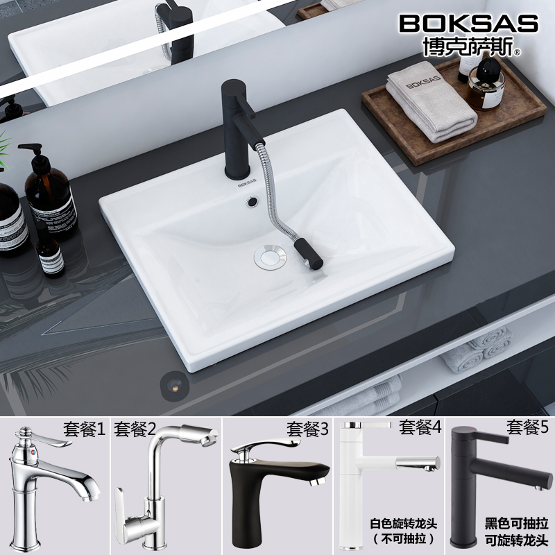 Square 20 inch single sink (give three sets) square 20-inch basin tap package 1 (give six pieces) square 20-inch basin tap package 2 (give six pieces of cover) square 20