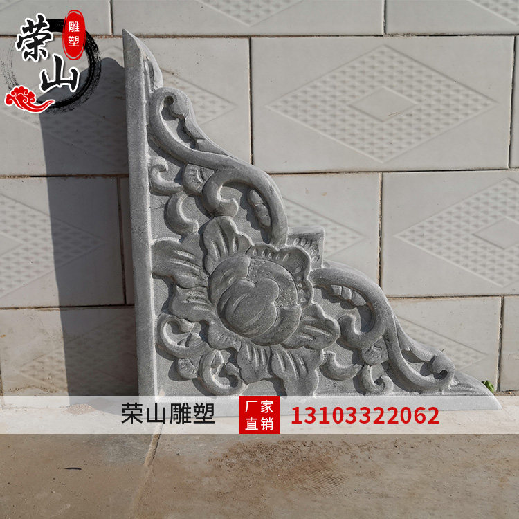 Stone Sculpture Green Stone Relief Chinese Style Courtyard Wall Sculpture Flower Mural Painting Xuanguan Background Stone Peony corner Flower Xiang Xiang Yunfu Character