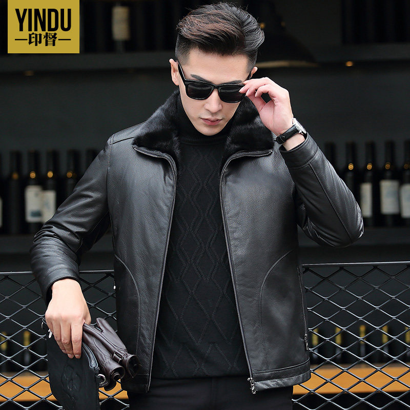 Winter thickened Haining genuine leather jacket men's stand collar short mink fur inner bile leather jacket cowhide mink jacket