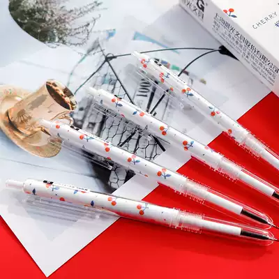 Morning light hipster press neutral pen girl heart students with cute cherry tame signature water pen 0 38mm thin black