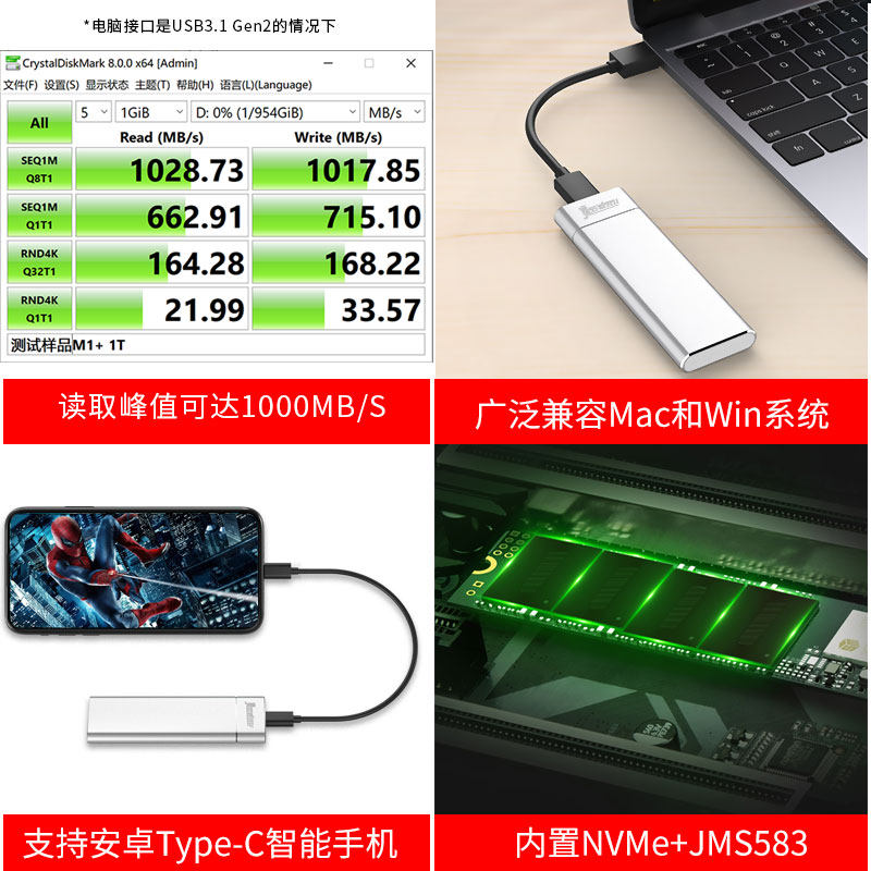 colfish NVMe Mobile solid-state hard disc 1t suitable for Apple Macbook external wtg solid hard disc type-c thunder 3 high speed solid winto