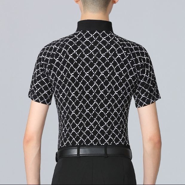 Small chain short-sleeved shirt with small chain edge black short-sleeved shirt
