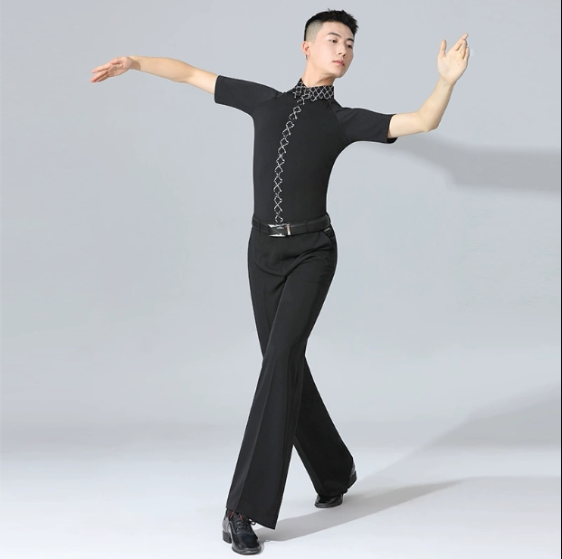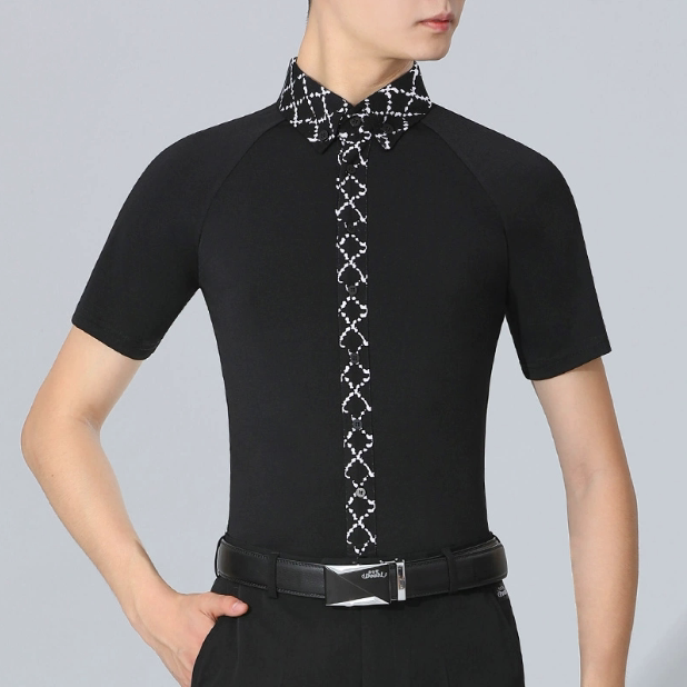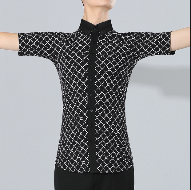 Dampolo 2023 brand Latin Dance Town Men Short Sleeve New Communication Dance Shirt Summer Training Costume