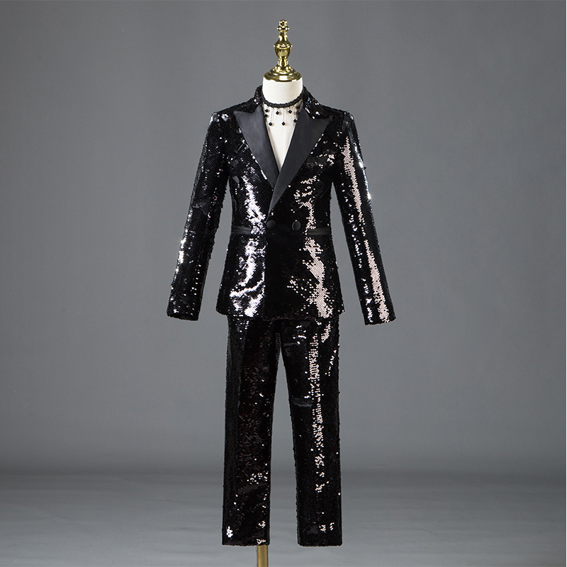 Children's catwalk suit suit girl sequined black cloak cloak dress boy piano performance suit host suit
