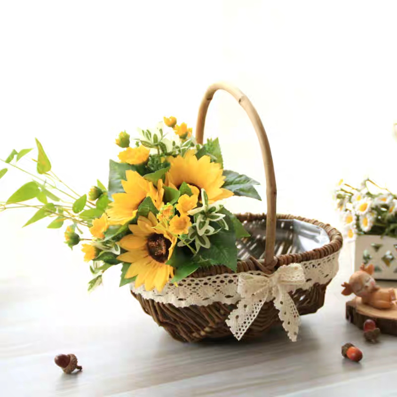 Export to Japan Korean girl heart lace portable Willow flower basket gift basket flower drying flower basket Photo Channel