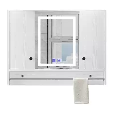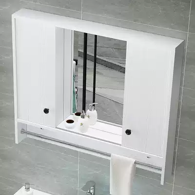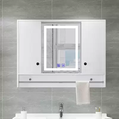 Solid wood Feng shui mirror hidden bathroom mirror cabinet Nordic powder room wall-mounted sliding door with light Smart mirror cabinet