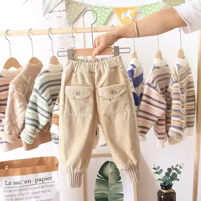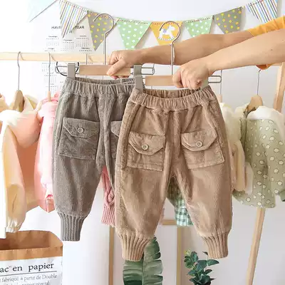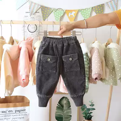 Female baby corduroy pants plus velvet thickened autumn and winter 2021 new girls casual wear warm pants Super foreign pie