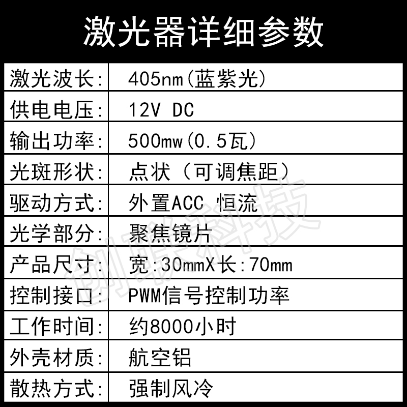 12V high power laser module Small engraving machine 500mw blue-violet laser head 405nm adjustable focus
