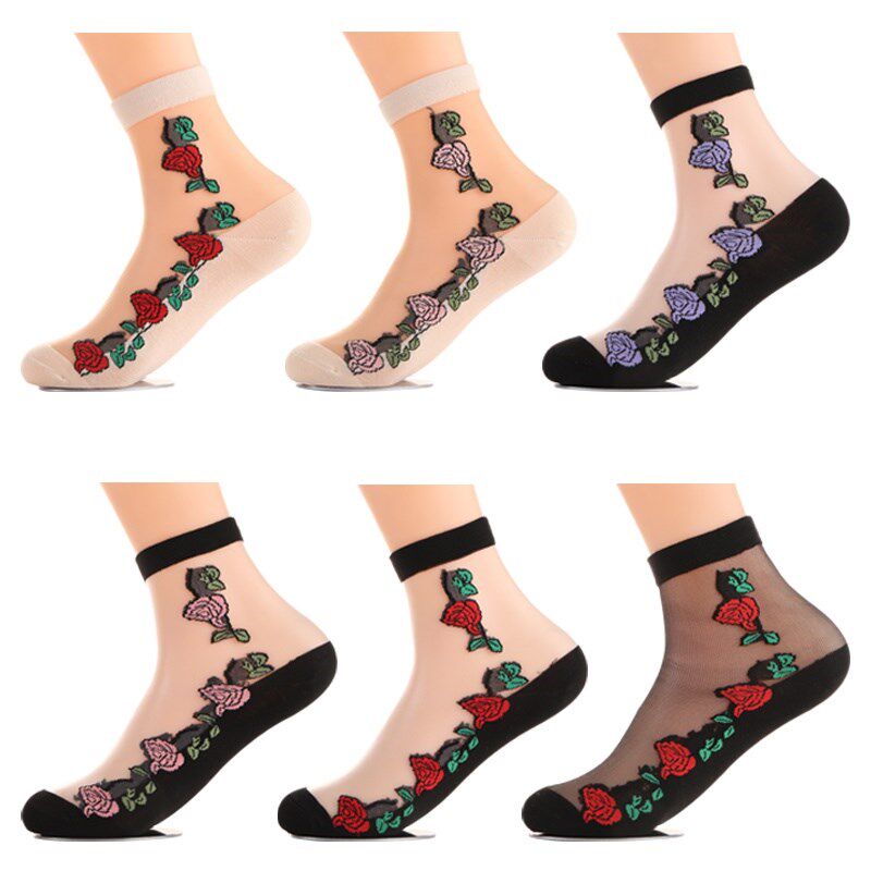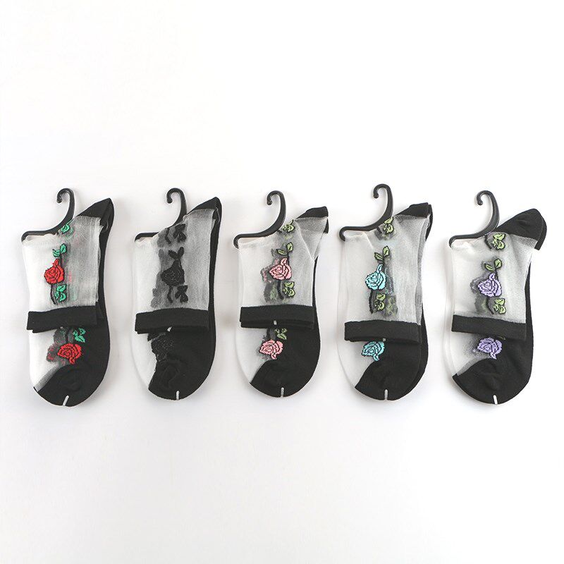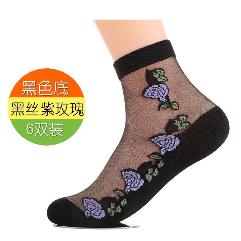 Summer wide transparent muffled female thin crystal abrasion resistant embroidery in silk mouth short anti-slip short silk stocking Sox meat color with points