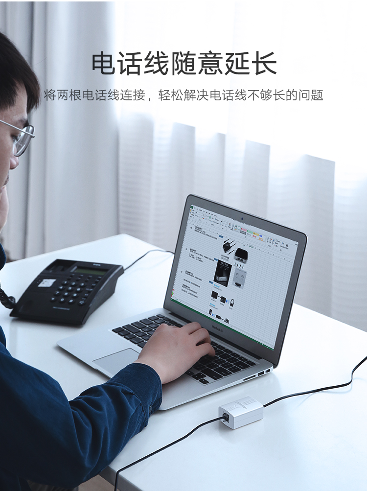 Green Union (UGREEN) telephone extension line telephone line one point two extender RJ11 straight-through three 20351