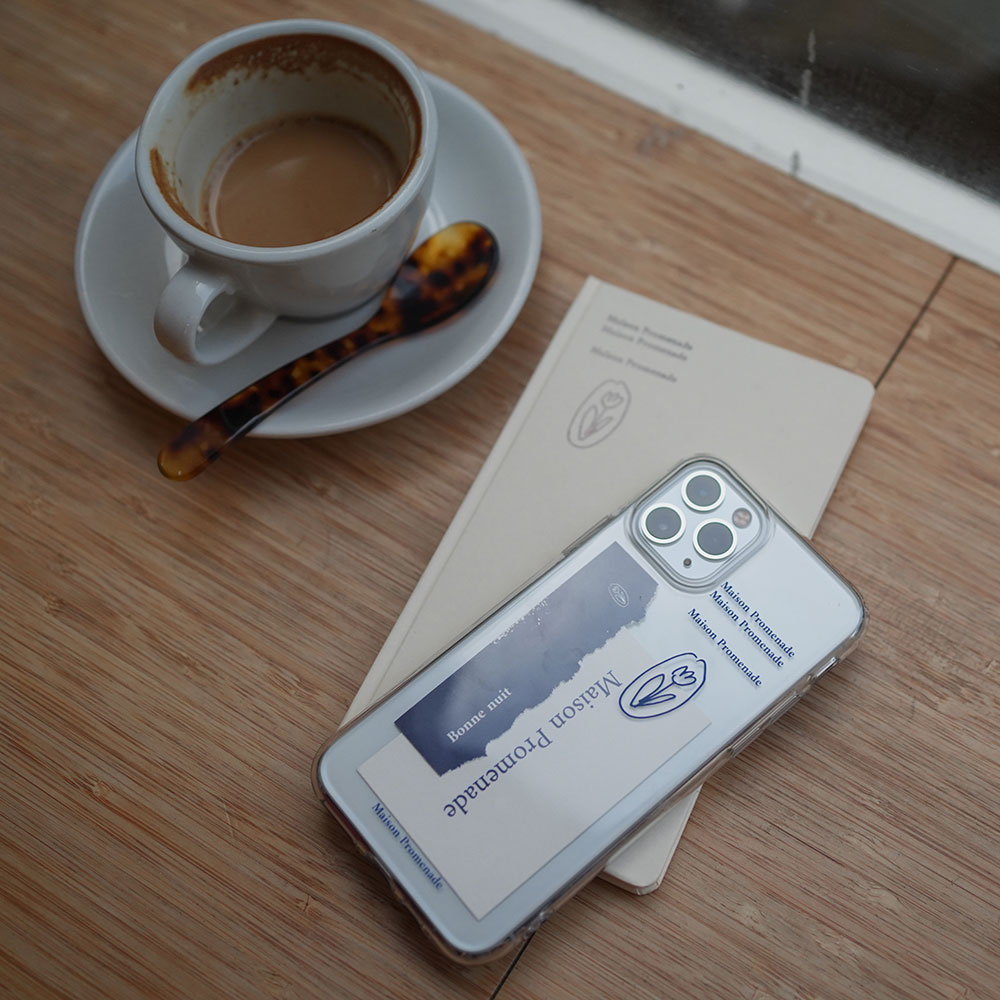 maison promenade transparent phone case all-inclusive soft case with card navy tulip original design