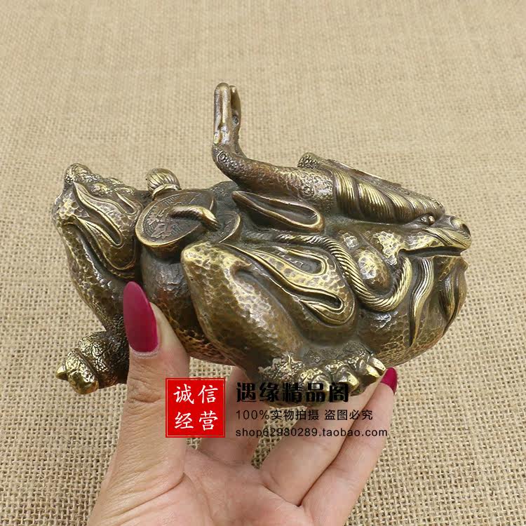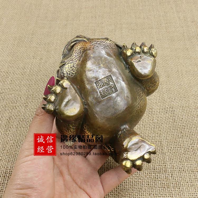 Imitation ancient made of old pure copper brass tap Three feet gold toad Caifeng Feng Shui bronze instrumental small pendulum piece