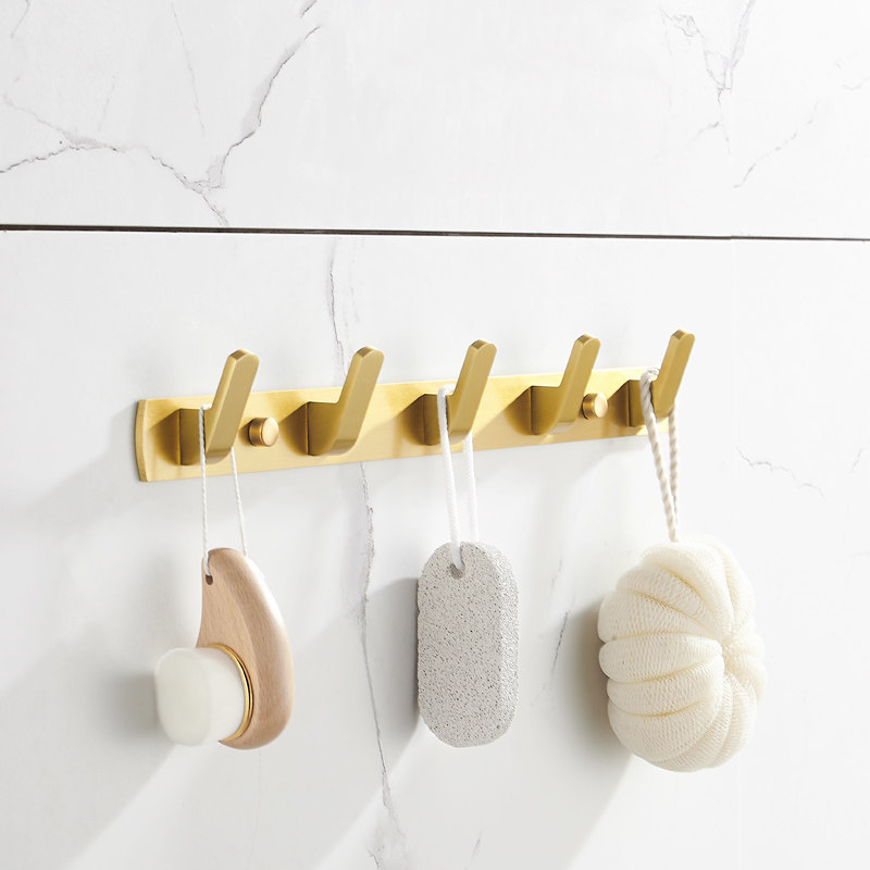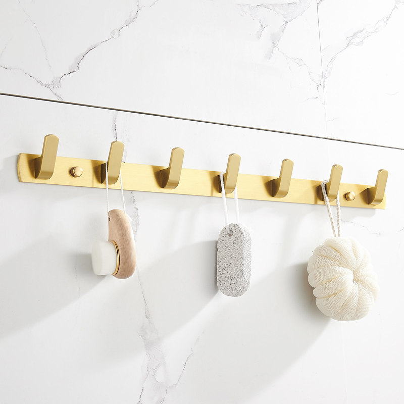 Nordic brushed gold space aluminum hook wall hanging free punch bathroom powder room hanger row hook toilet light luxury