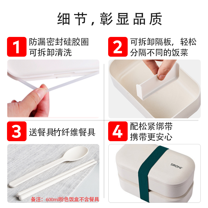 SIRONI split Bento Box Heated bamboo fiber bento box Microwave oven bento box Office workers can carry bento box