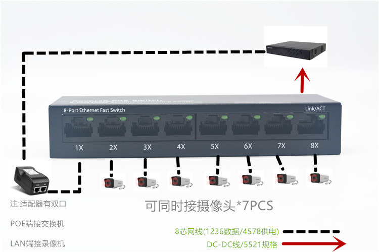 Reverse powered 8-port PoE switch hub Non-standard Power PoE switch Intelligent powered type