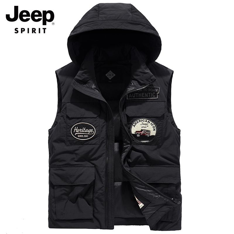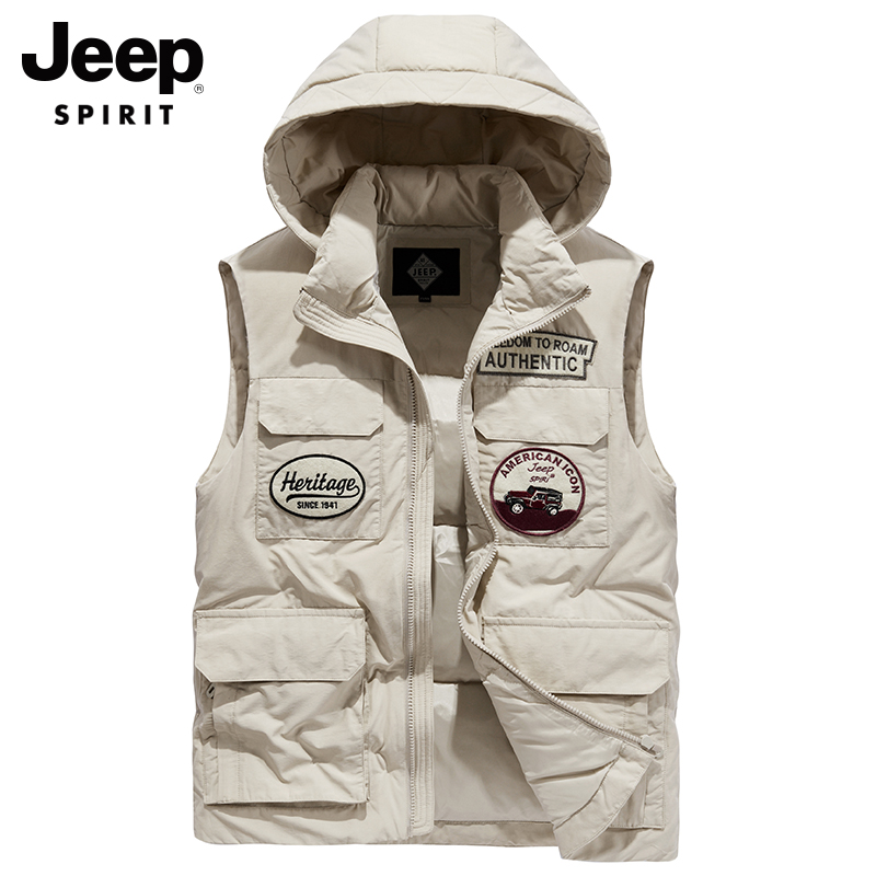 JEEP down clothes Men's autumn Winter 2023 new Lianhood men's down waistcoat waistcoat Waistcoat Boom-Taobao