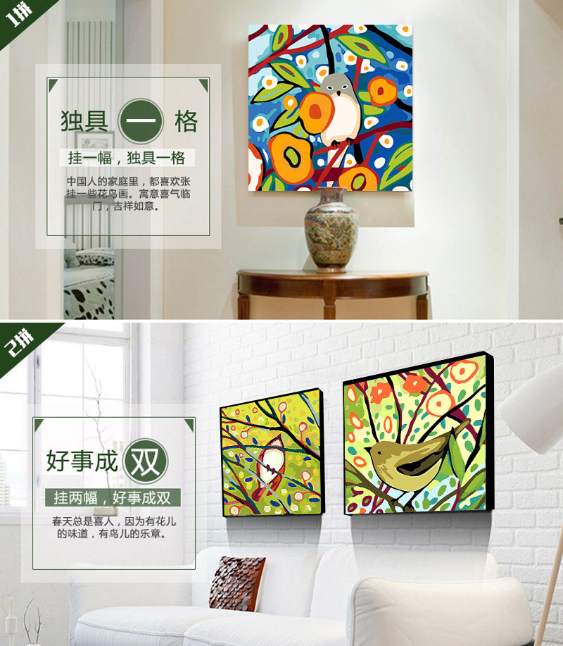 Auspicious Flowers Bird DIY Digital Oil Painting New Chinese Style Modern Living Room Genguan Aisle Oil Color Decoration Painting Simple And Good Painting