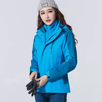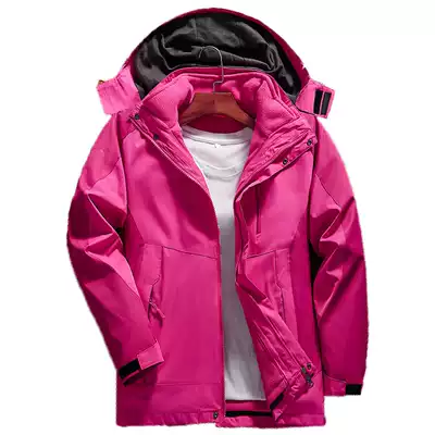 Outdoor clothes men and women Tide brand three-in-one two-piece set detachable plus velvet thickened autumn and winter jacket Tibetan clothing