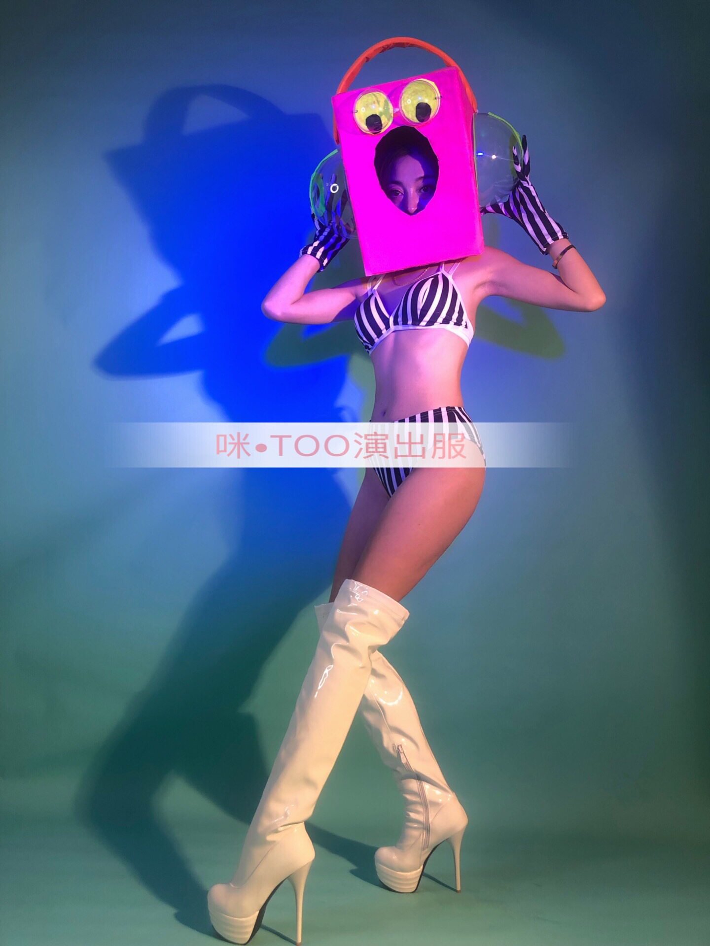 TT High-end Party Act Out of Costume for a Little Yellow Man Fluorescent Pink Nightclub Bar Tour GOGO DS to Play Out