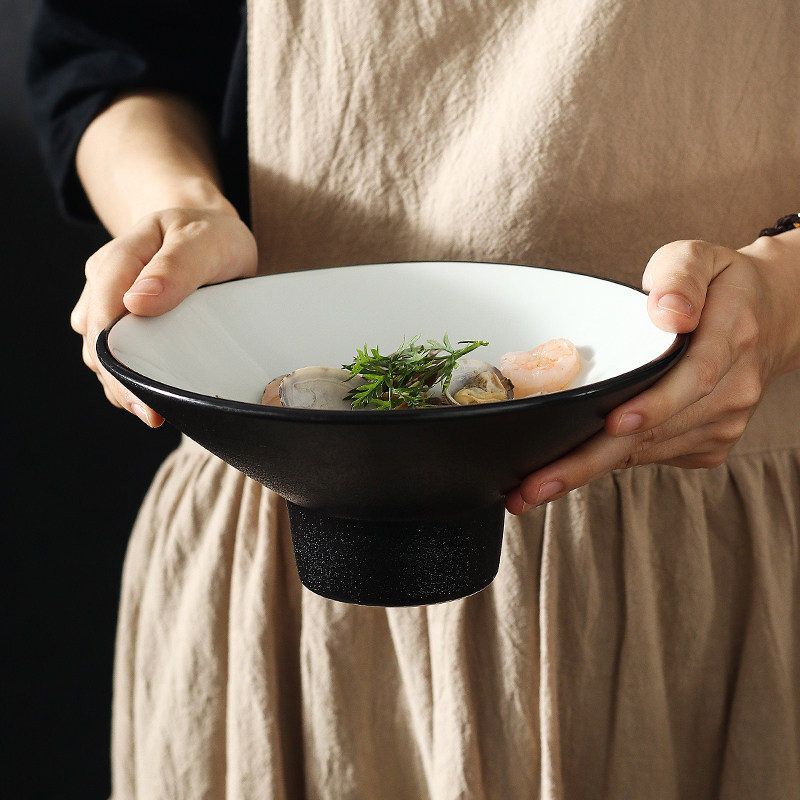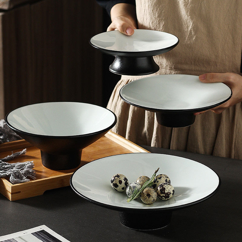 Small dish ceramic creative plate black retro Chinese dessert snack tower bowl high foot fruit bucket commercial small dish bowl