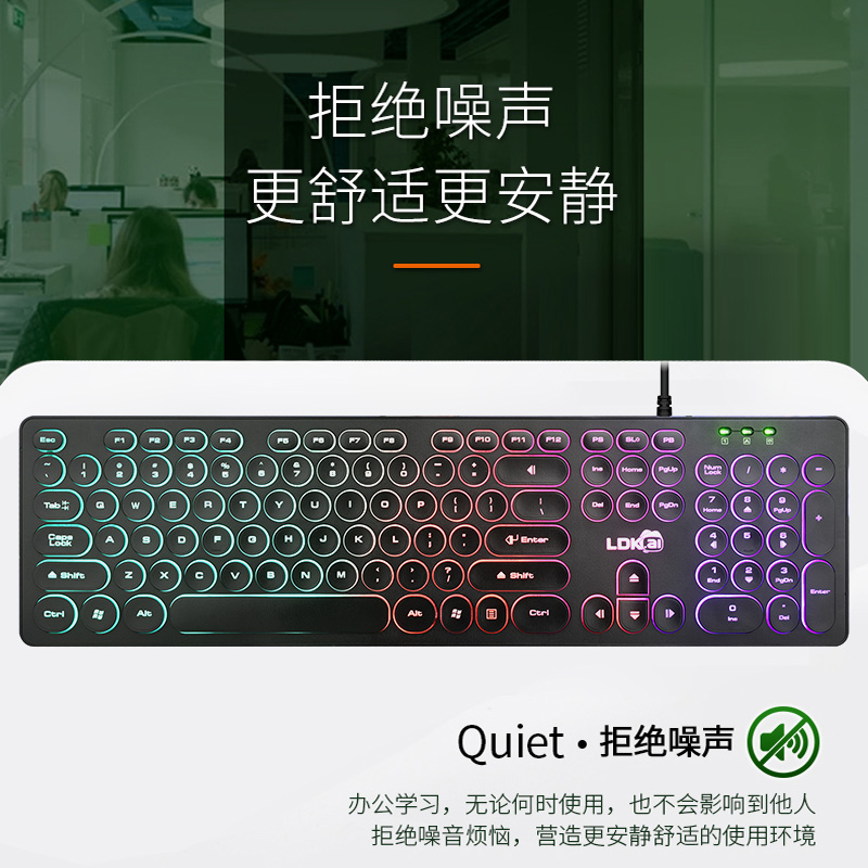 Chocolate Mute Wired Keyboard Retro Punk Round Keycap Notebook Desktop Computer External Link Slip Rat Set Film Office Typing Machinery Hand Feel Good Dedicated Girls Cute Silent Electric Race