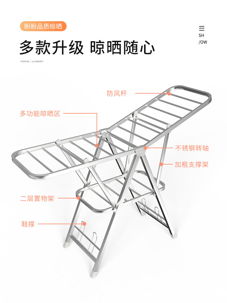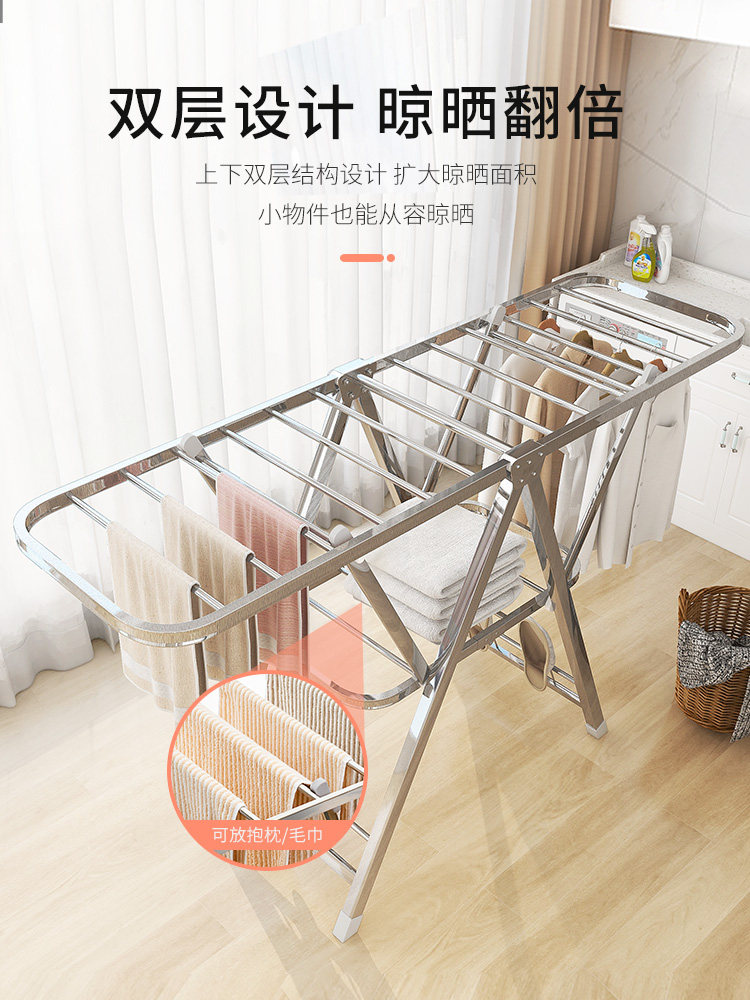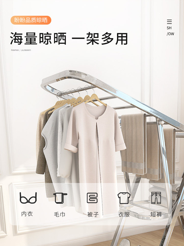 Panpan clothes hanger landing folding indoor clothes pole home balcony airfoil cool clothes hanger stainless steel drying quilt hanger