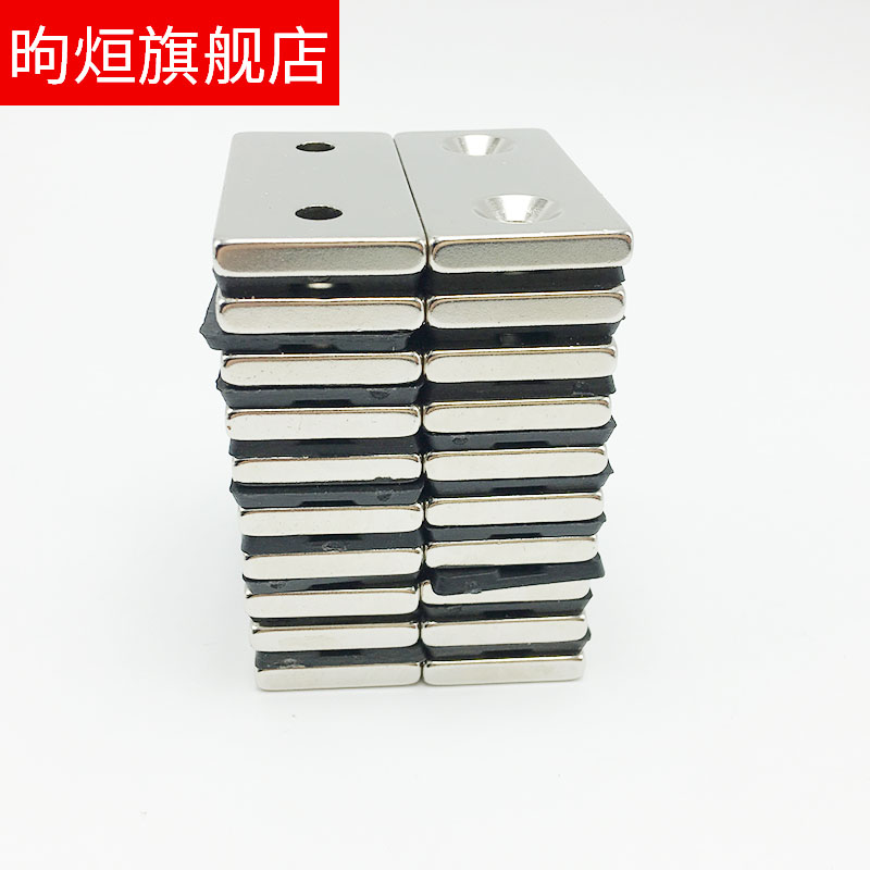 Strong magnetic rectangular double-hole magnet 60*20*5 mm super suction with hole countersunk head magnet
