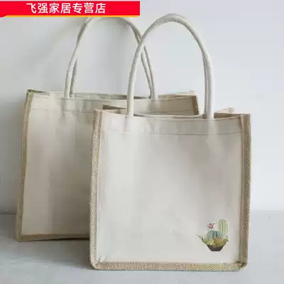 Jute shopping bag linen bag small fresh bag retro canvas custom logo bag cotton and linen shopping bag