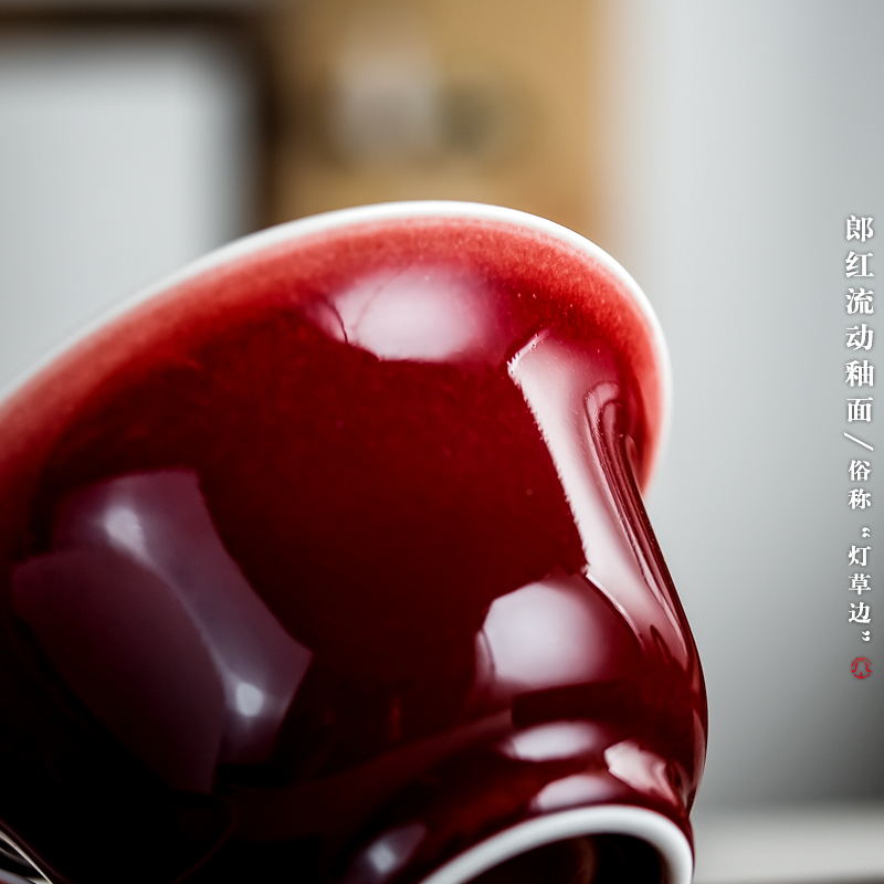 Shengshan Jingdezhen Lang red ceramic bowl large kung fu tea cup tea set tea bowl three Cai cover Bowl ceramic tea bowl