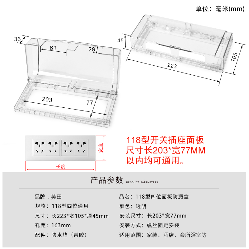118 Type Four Socket Waterproof Hood Transparent Waterproof Case 118 Type 12 Hole Socket Kitchen Makeup Room Splash-Proof Water Box