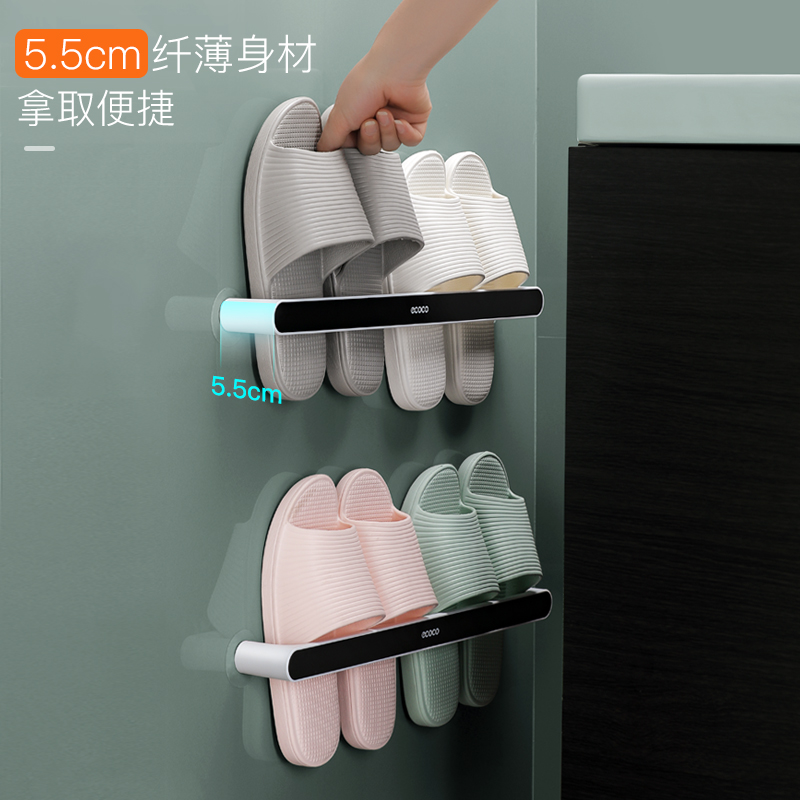 Bathroom slipper rack Wall-mounted non-perforated powder room door storage artifact Toilet drain pylons Wall shelf