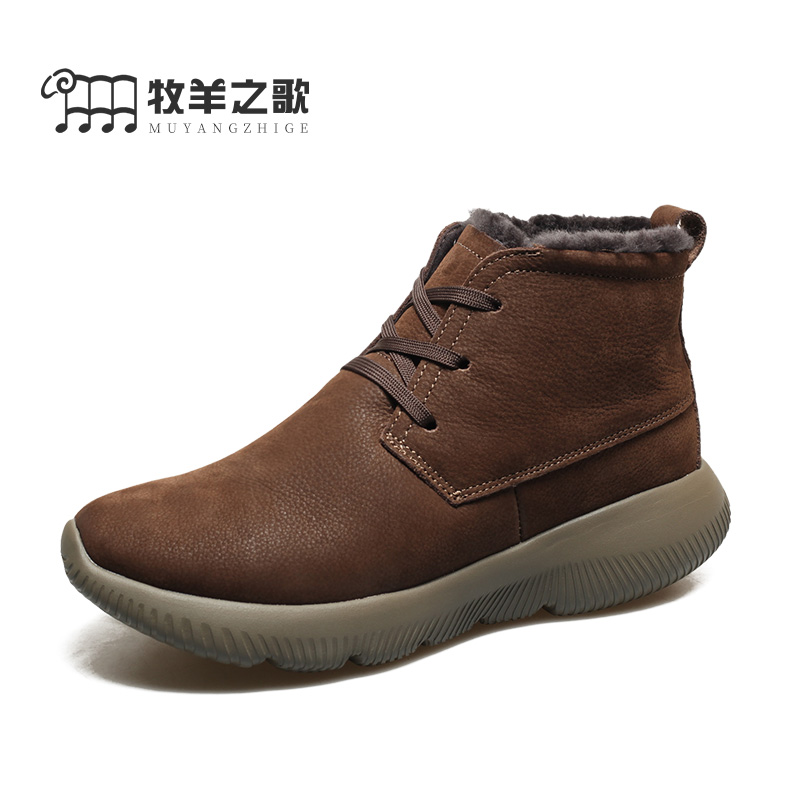 Leather hair integrated snow boots masculiny thickened wool men Northeastern large cotton shoes Winter men's shoes anti-cold boots winter shoes