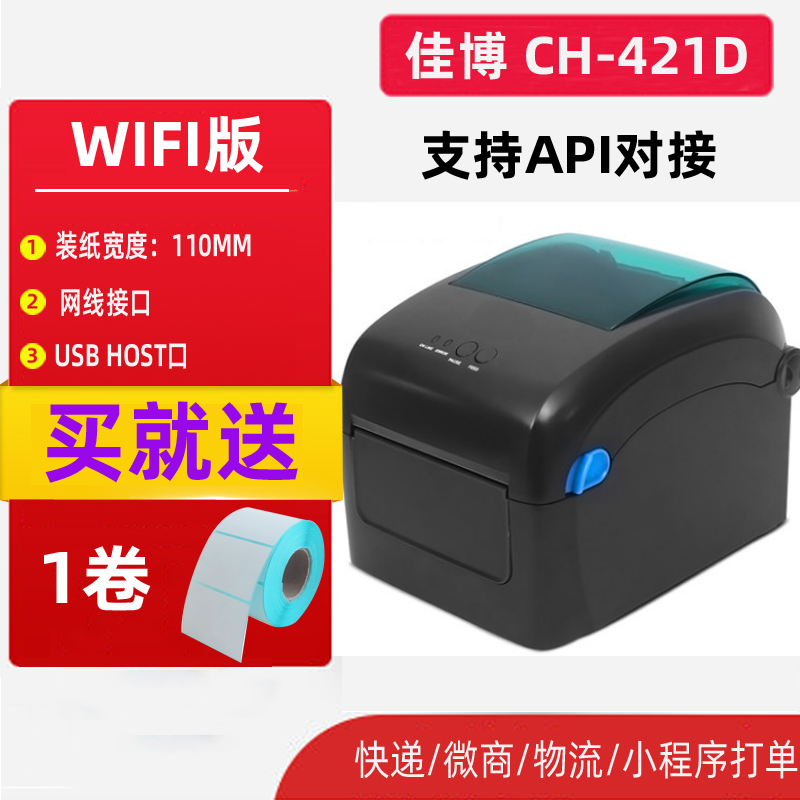 Jiabo CH421D thermal self-adhesive label barcode printer supports remote cloud printing 305T label machine WIFI networking WeChat scan code to print electronic invoices