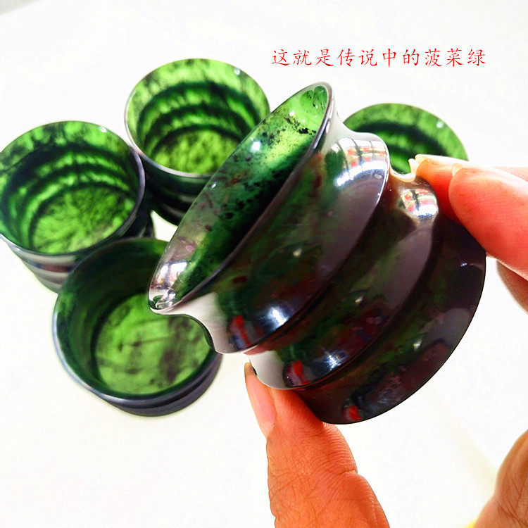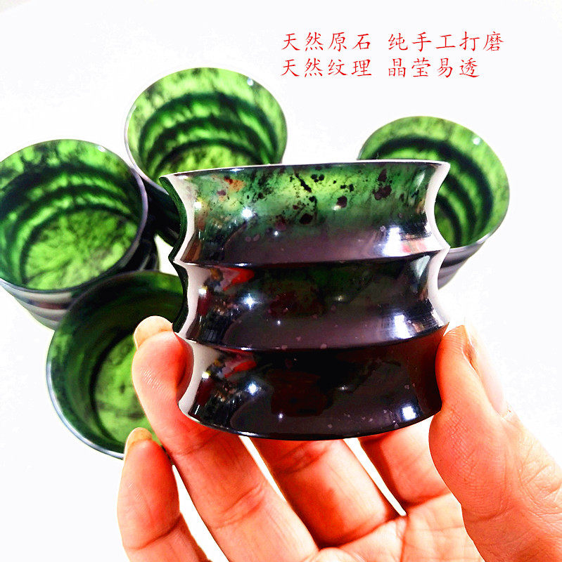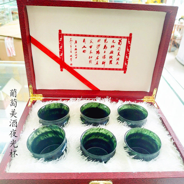 Gansu specialty Jiuquan luminous Qilian ink jade festival high tea set wine set snake jade factory direct sales