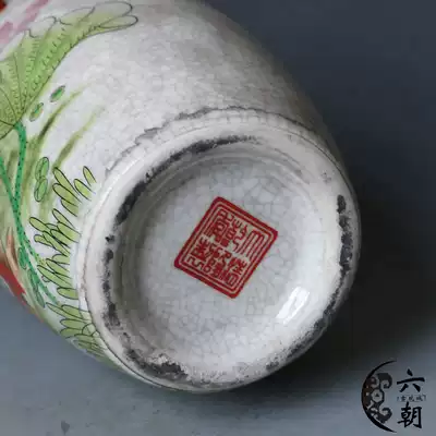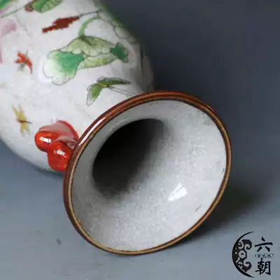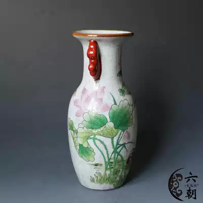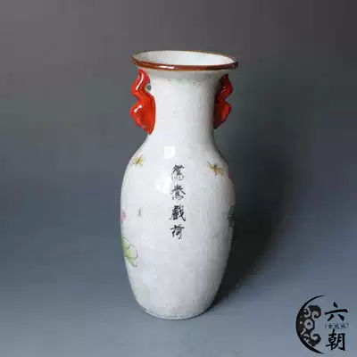 Antique Jingdezhen porcelain pastel opening Mandarin duck opera Lotus binaural vase home ancient frame decoration decoration