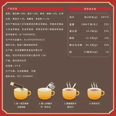 Black sesame> 28% black beans> 28% black walnut> 9% jujube Yam black peanut> 5% black quinoa> 1 9% chia seeds> 1 8%