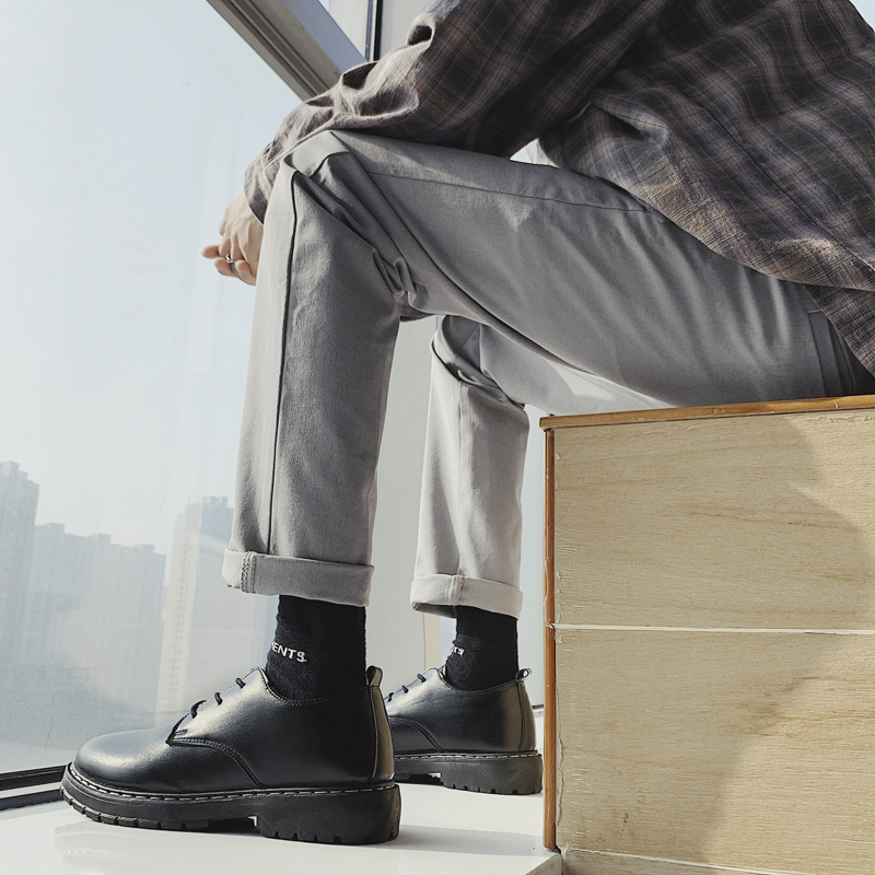 Black round head small leather shoes men and Korean edition trend teenager English hundred students leisure inside casual increase suit shoes