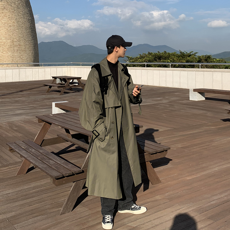Windcoat men and long winter thickening autumn 2023 new British wind long knee green in coat