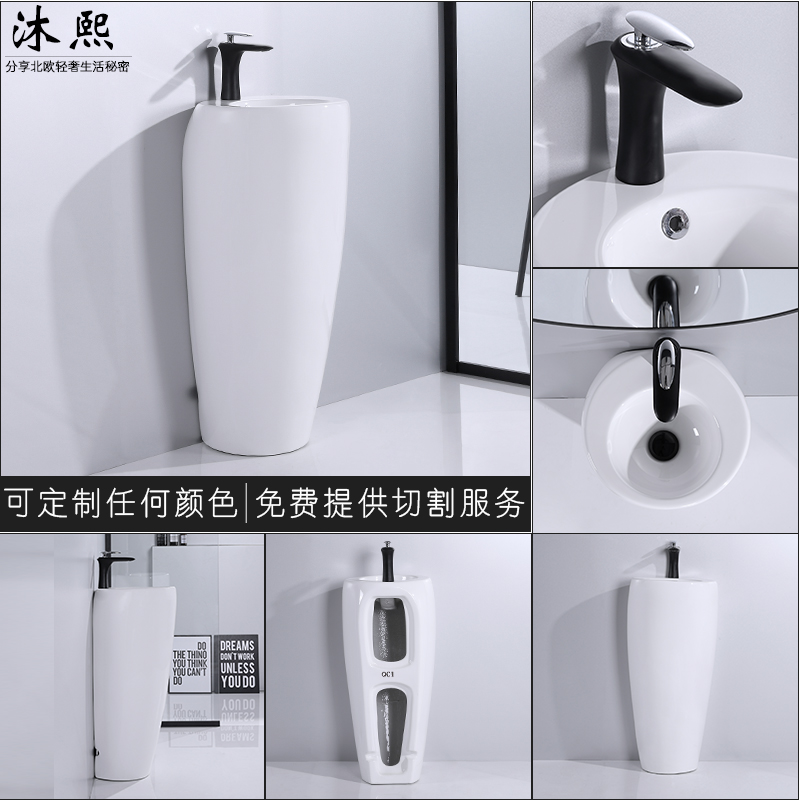 Nordic small household type integrated ceramic column basin Makeup Room Wash Basin Square Washbasin Mini small brute waist Terra basin