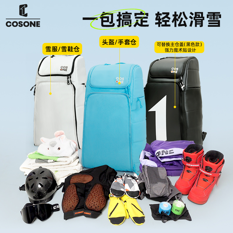 COSONE Ski Bag Double Shoulder Backpack Single Double Board Shoes Bag Classic Black Leather Multifunction Large Capacity Waterproof Containing-Taobao