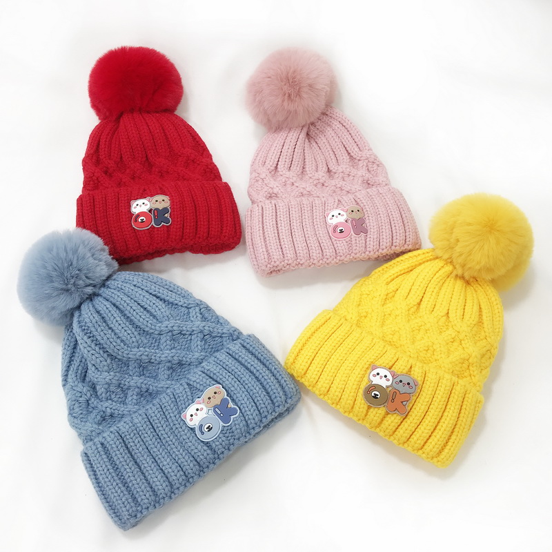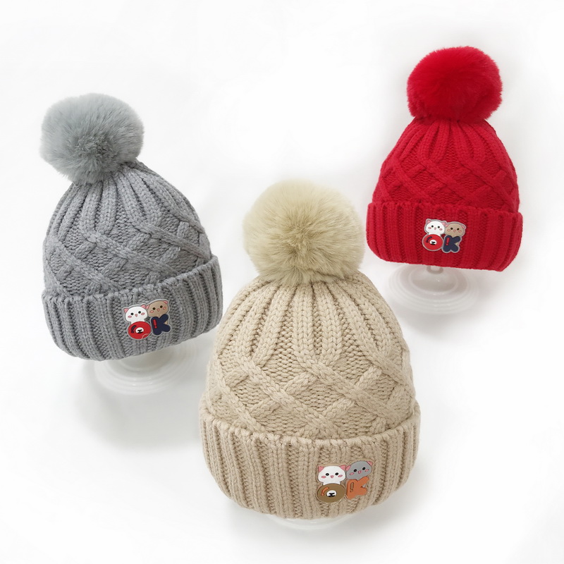Baby wool line hat autumn winter cute little bear baby cap male and female child care ear cover headgear kid warm hat