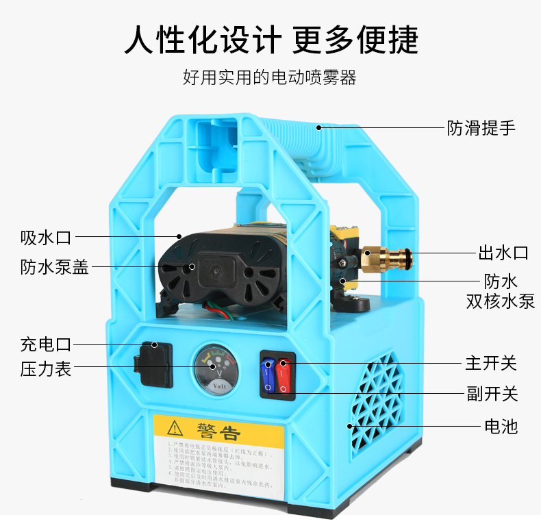 Lithium battery blue watering pump (with accessories) + no outlet pipe