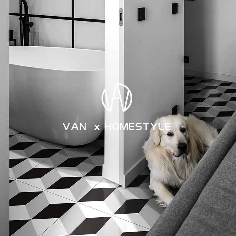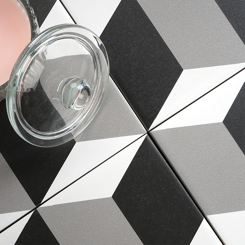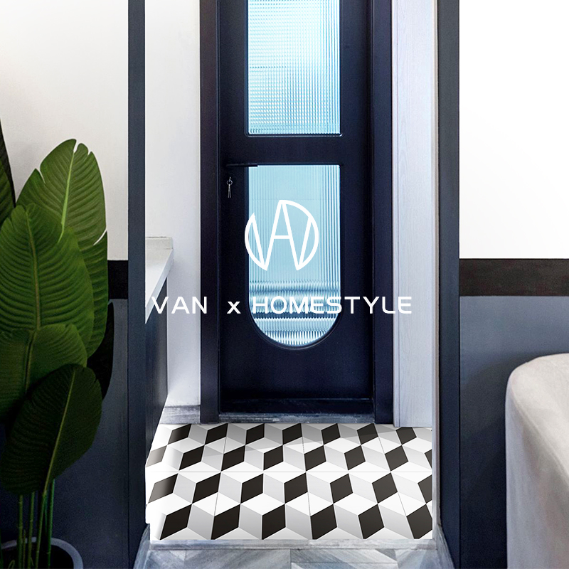 Fannei retro black and white small flower tiles floor tiles balcony flower tiles Nordic bathroom kitchen tiles 300X300