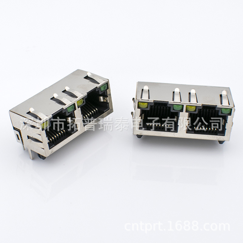 RJ45 socket 56 series 1X2 dual port with elastic RJ45 network interface 8P with light 90 degree network connector