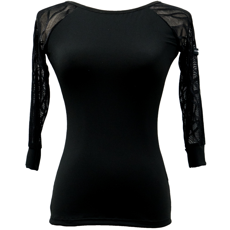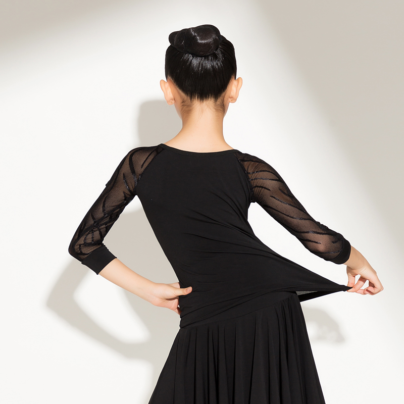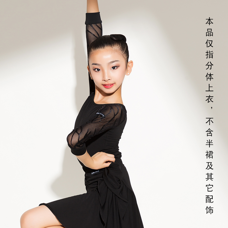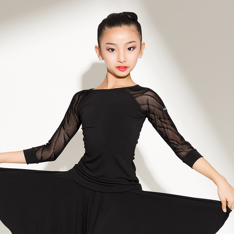 Gruiya children Latin dance clothes new children long sleeves spring and autumn just big round neck striped gauze sleeve two piece top