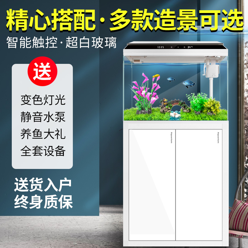 Fish tank Living room Small and medium-sized ultra-white glass lazy free water change desktop ecological household intelligent aquarium with cabinet