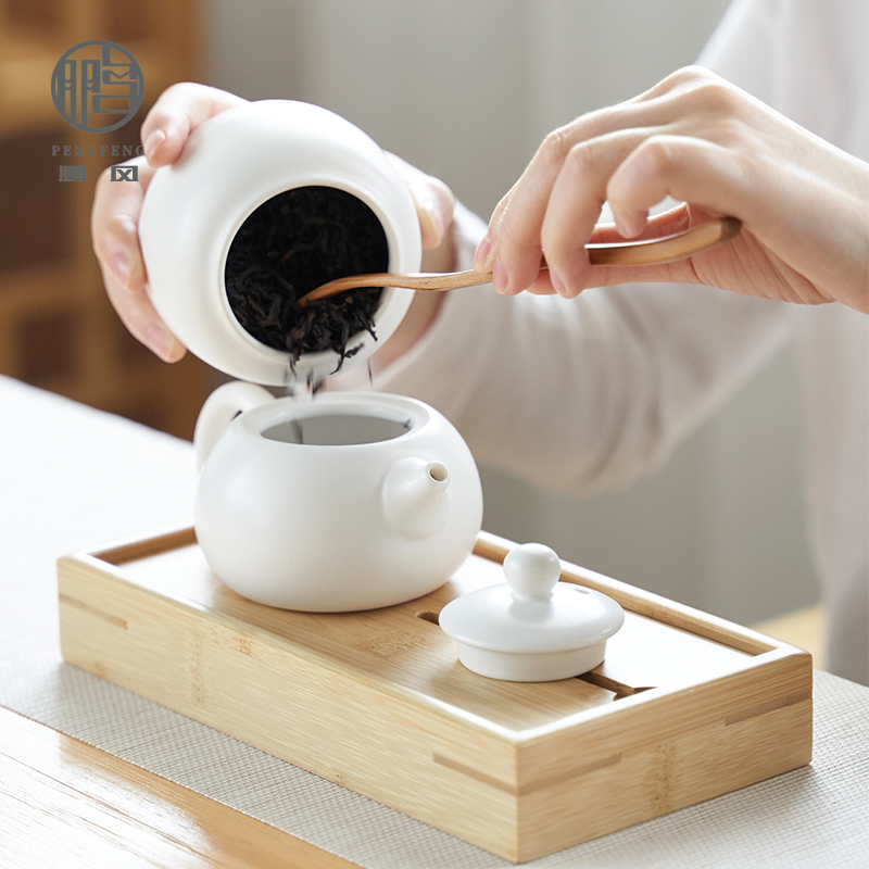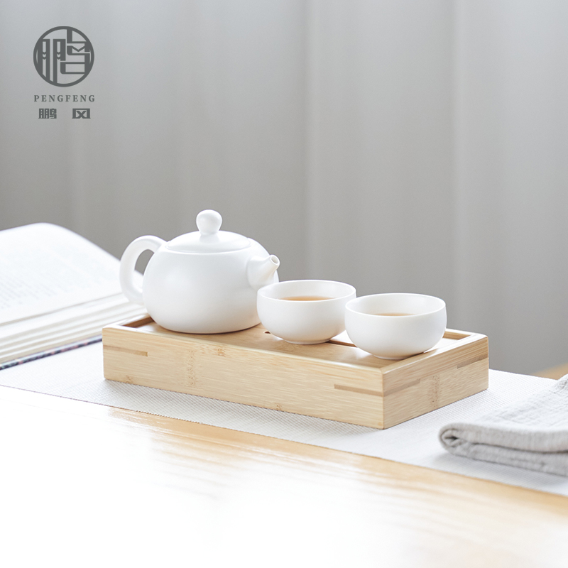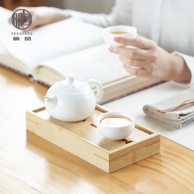 Day-style Dingkiln teapot tea teacup ceramic One pot of tea tea set with small number of small number simplified and made of bamboo tea tray Gongfu tea furniture