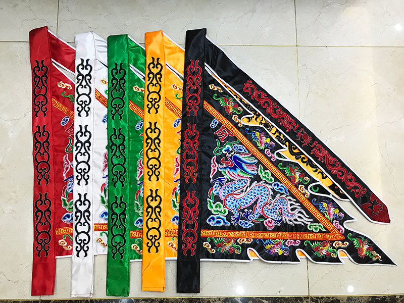 Upscale Order Flag Dragon Flag Two-sided embroidered version Five-Camp Flag Five-square-flag Five Color Order Banner Triangle Banner Dragon Banner-Taobao