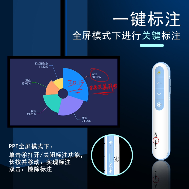 asing H103 Dual Laser Page Page PPT Remote Pen Projection Pen Multimedia All TV Laser Pen One-click Tagged Volume Regulation Infrared Electronic Whip Demonstrator