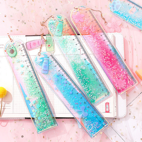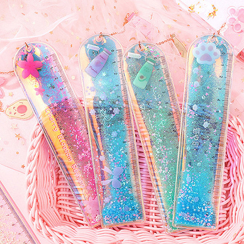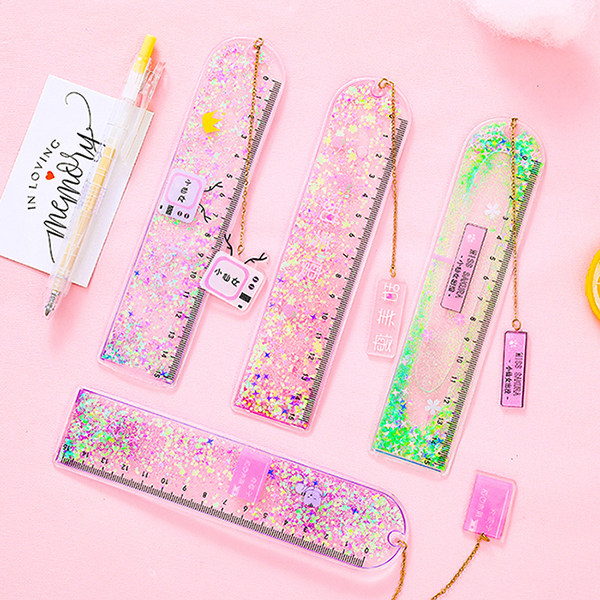 Cute stationery oil quicksand bookmark ruler cute laser girl ruler creative multi-functional student stationery scale ruler boxed ruler